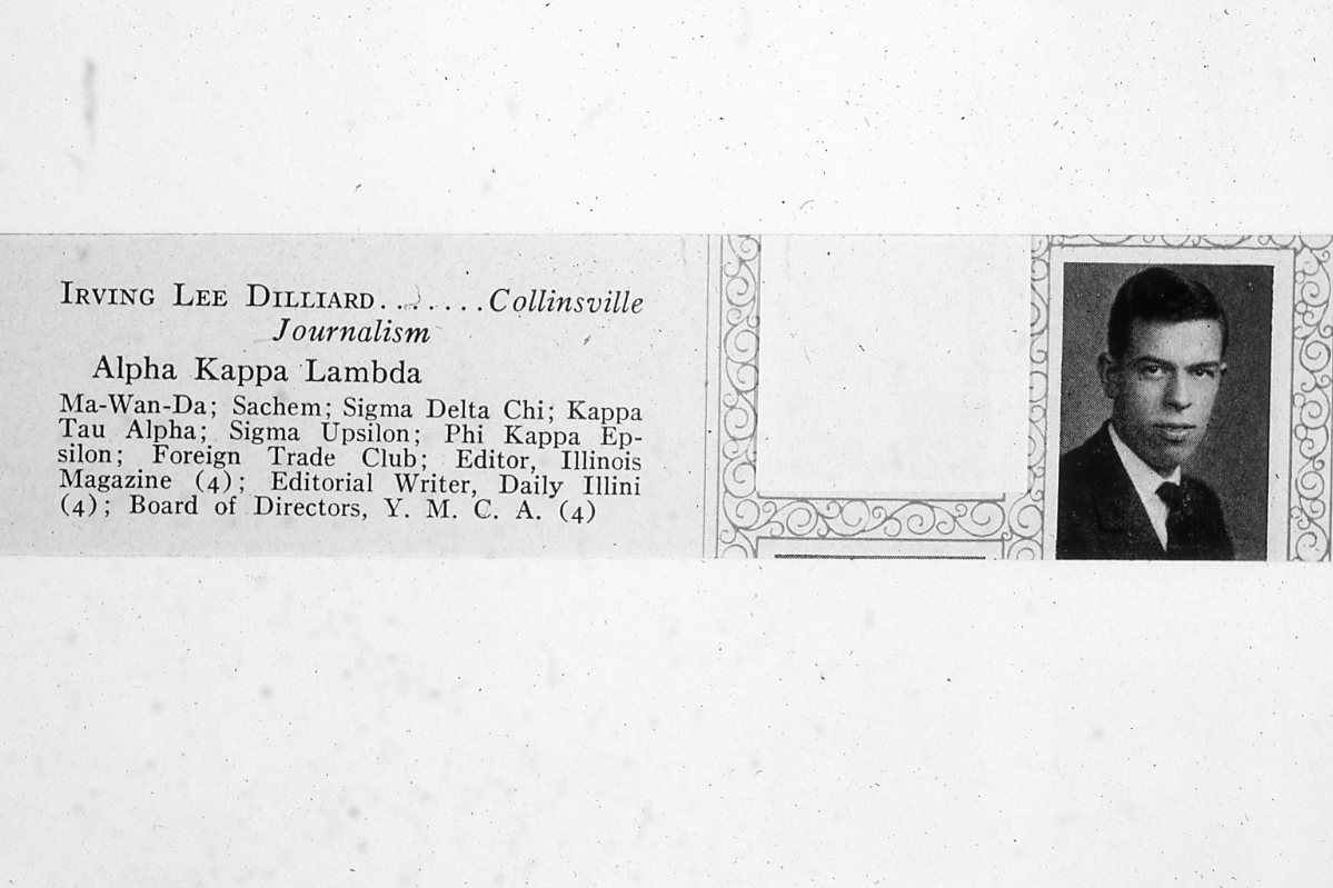From the Class of 1927, journalism major Irving Dilliard moved from the "Daily Illini" and the "Illinois Magazine" to the editorial desk of the St. Louis PostDispatch.